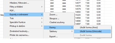 Po aktualizaci údajů ve formulářích lze vypsat z menu přes pravé tlačítko myši volbou Změněné hodnoty všechny změny hodnot v daném formuláři.